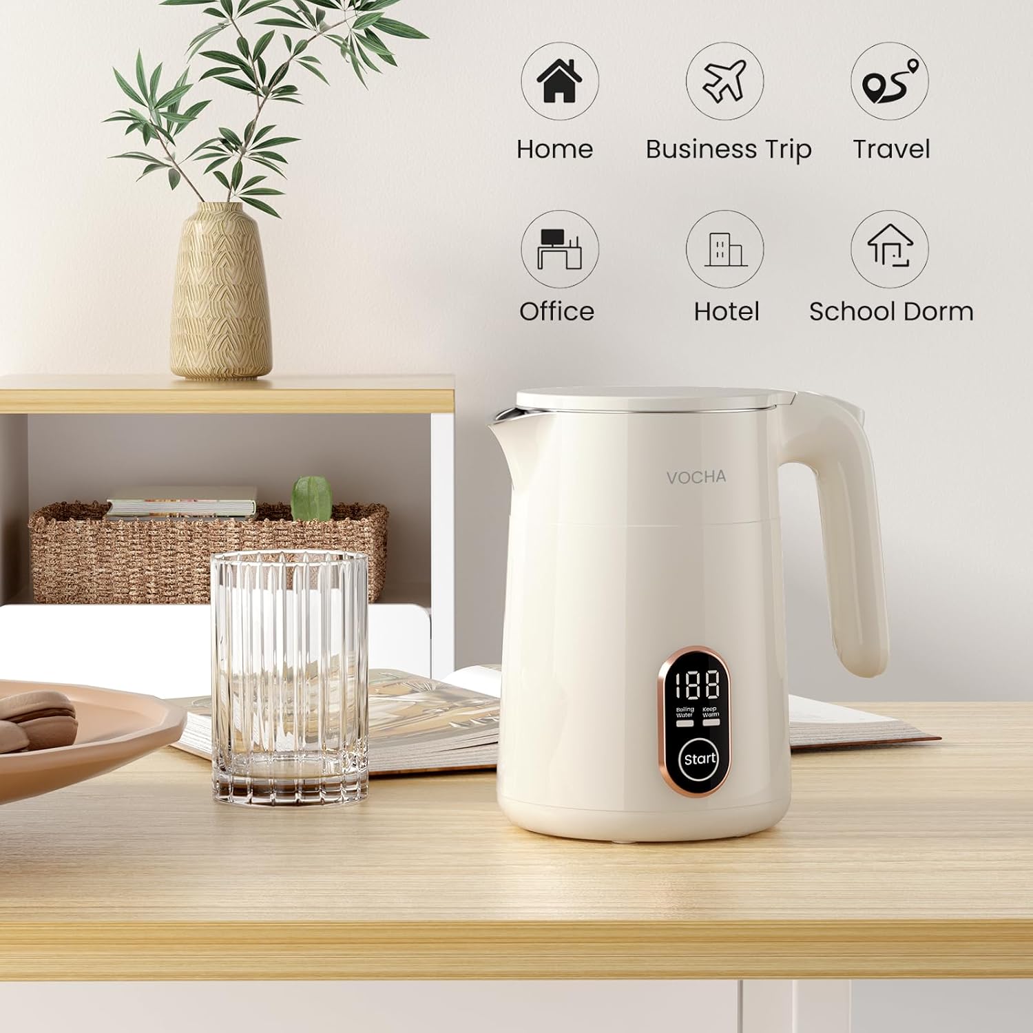 La bouilloire électrique Vocha Mini de 0,4 L fournit de l'eau chaude à tout moment et n'importe où. Compacte, légère et élégante, elle est idéale pour les voyages, le bureau, les résidences étudiantes, les hôtels et le camping .